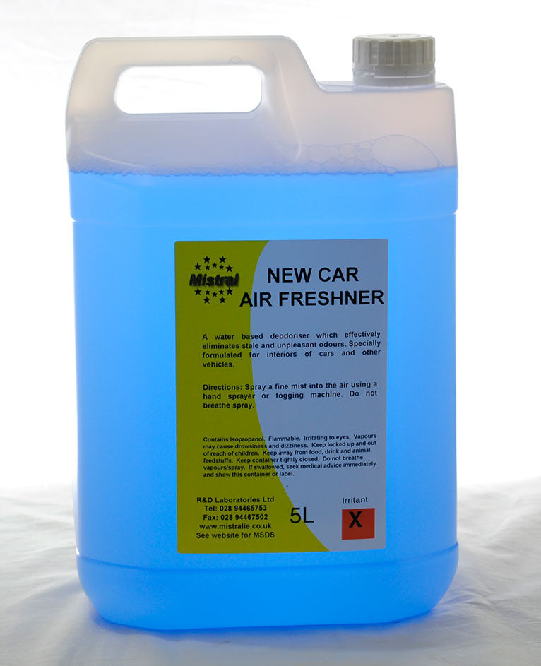 A car air freshener specially designed for use during valeting and cleaning.  This product will remove bad odours from fabrics and upholstery to leave cars smelling like new. Specially designed with our 'New Car' scent for a long lasting fresh smell.