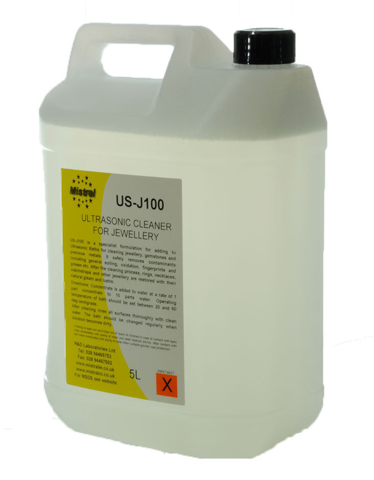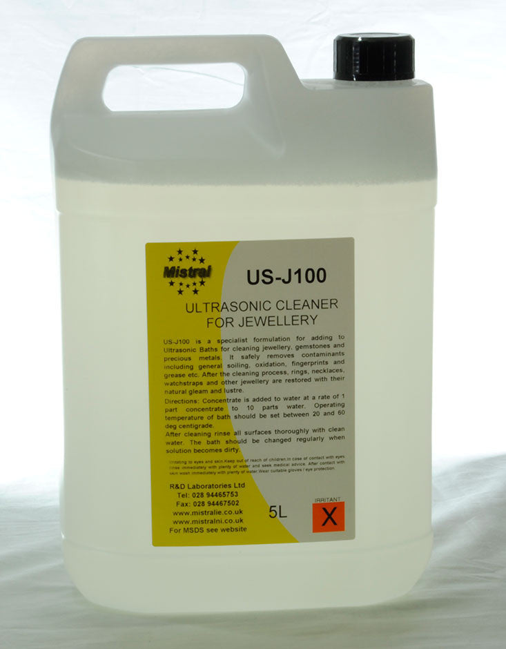 A specialist formulation for adding to Ultrasonic baths for cleaning jewellery, gemstones and precious metals. It safely removes contaminants including general soiling, oxidation, fingerprints and grease etc. After the cleaning process, rings, necklaces, watchstraps and other jewellery are restored with their natural gleam and lustre.